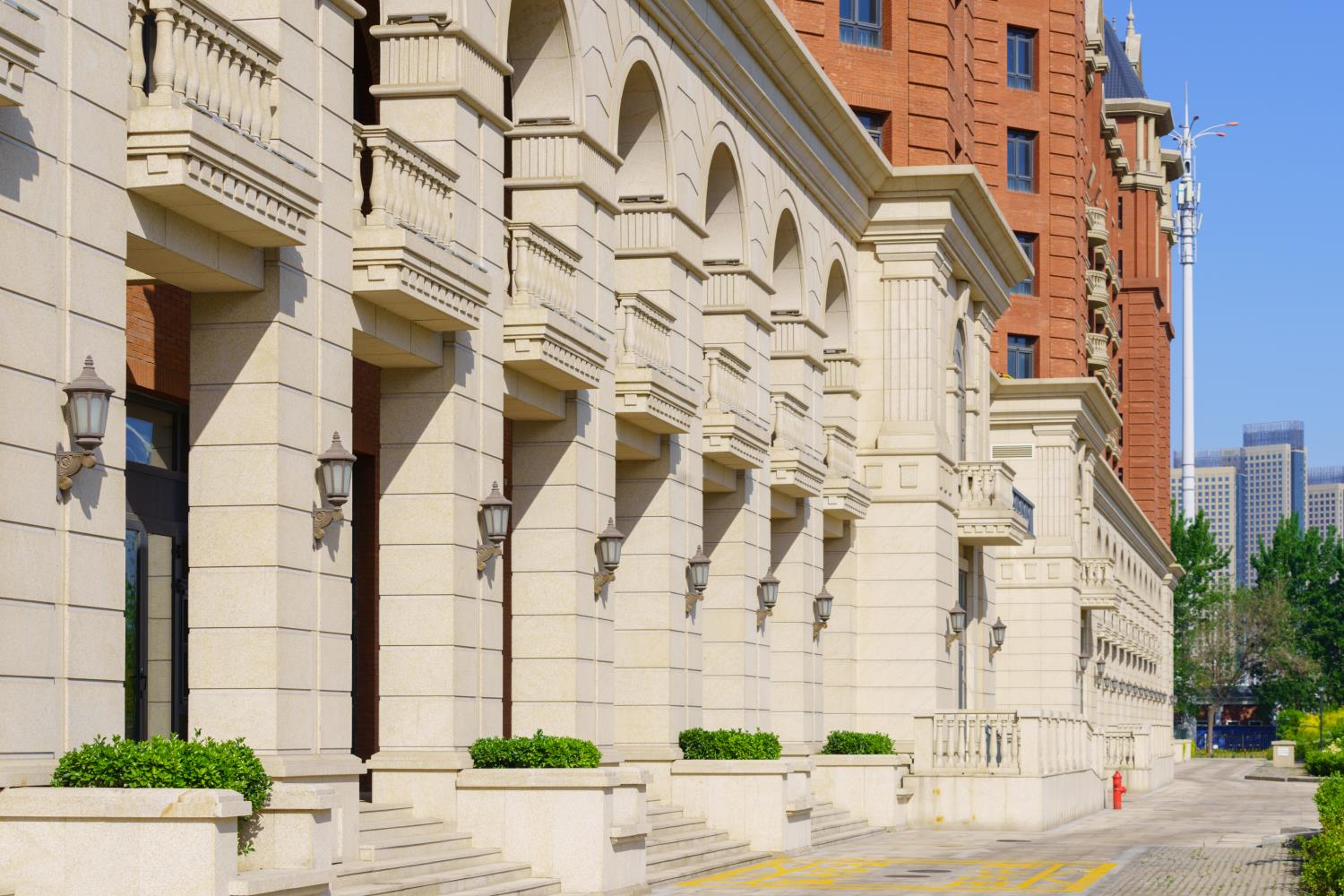位于天津市河西区。项目四至为东至 海津大桥,南至大沽南路,西至秋霞路,北至台儿庄路。博岸名邸项目外立面为英伦风格建筑,商业/非住宅共计51套,总面积7736.59.㎡,均为毛坯现房。面积、户型多样:项目总楼层为9层,1、2层为商业, 商业种面积为7737㎡,商业为单一层跟一跃二的户型,单套面积从18㎡~320㎡分租整租皆可。