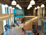 在内部装修中,考虑到周边停车问题,故拿出一层近2000多方的面积改造室内停车场,临街位置改造商铺,做商业配套,服务园区内部企业的同时,方便周边居民的饮食起居,另用一层入户的旧有写字楼、园区“大堂”位置改造“众创空间”,助力小微企业的成长,二层我们采用的风格为现代简约风,每间都是精装办公室,在节约客户改造成本的同时,更容易为传统行业所接受,深受科技类行业的热爱,三、四层的定位为总部型、会展类产业,单层拥有4000㎡,超大的空间自由布局。五层的风格为工业风,算是文创类企业的聚集地,5米7的挑高,并且将每间办公室都改造为复式,合理利用空间,目前已入住的企业每家都有独立的风格,生机蓬勃,一片兴旺。