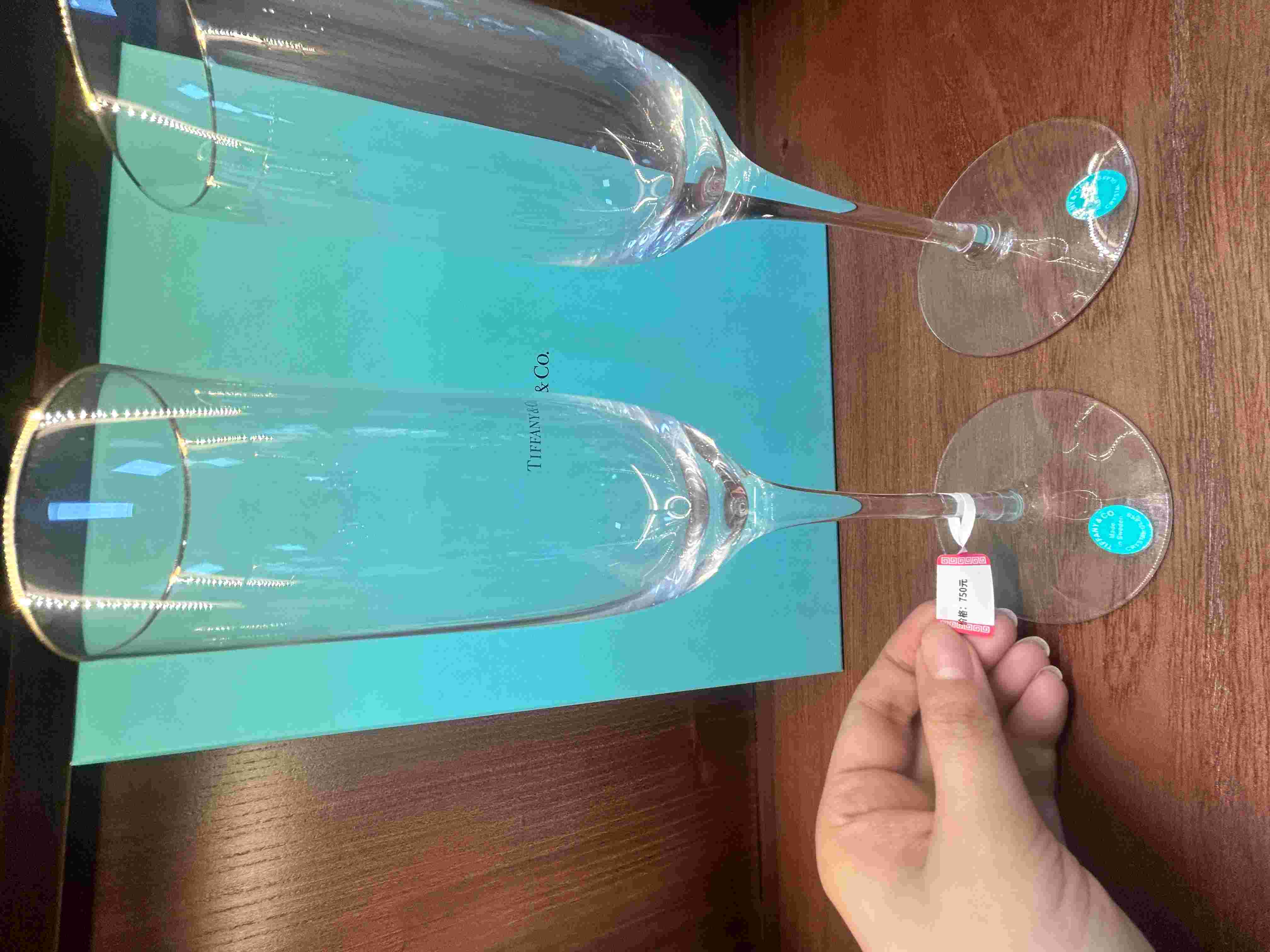 全新正品带盒蒂芙尼TIFFANY&CO.香槟杯1对 高225mm,底座直径70mm,杯口内径53mm (手工测量误差1-2mm)采用高品质玻璃材质,适合婚礼、节日等特殊场合使用。
