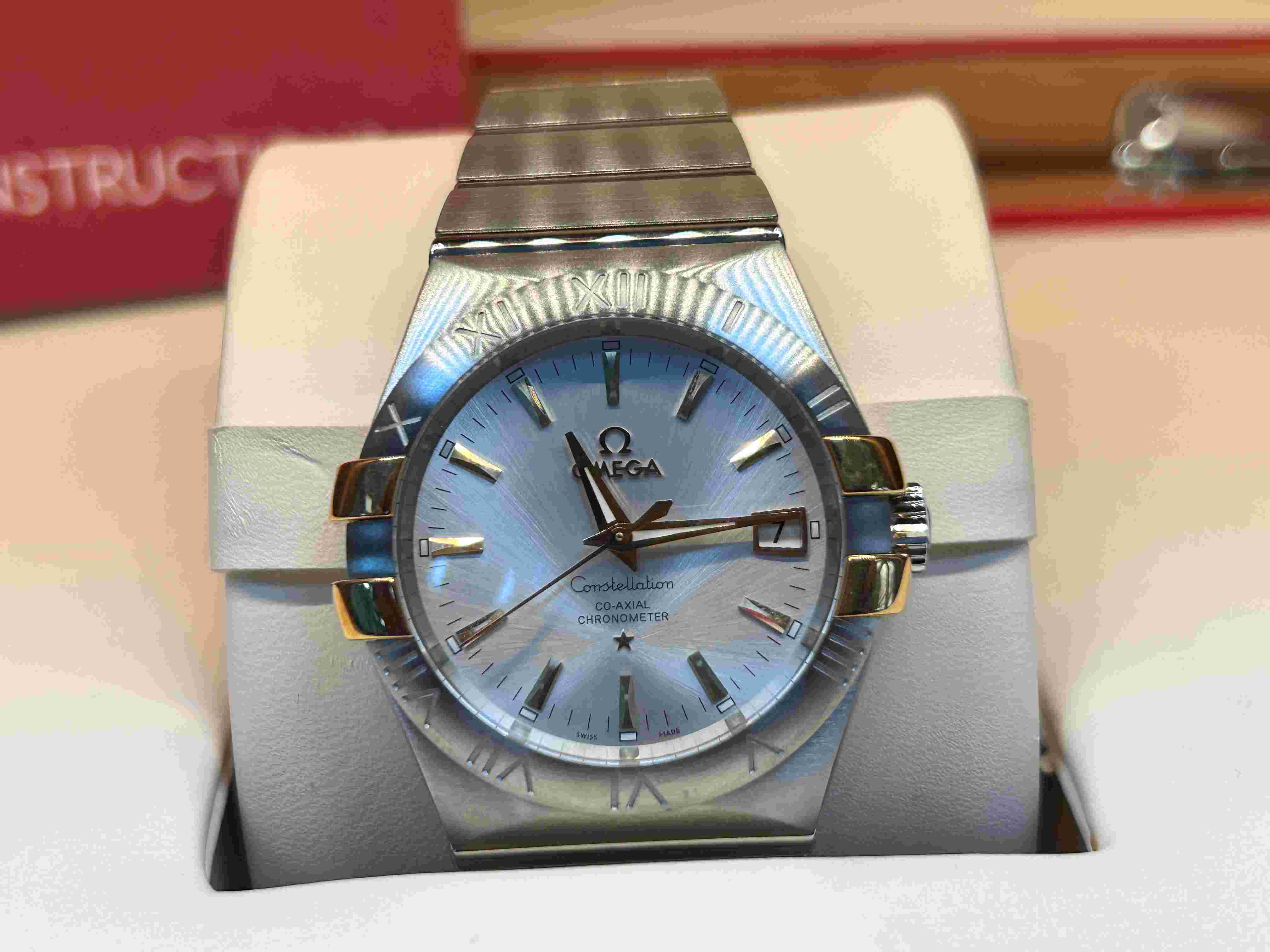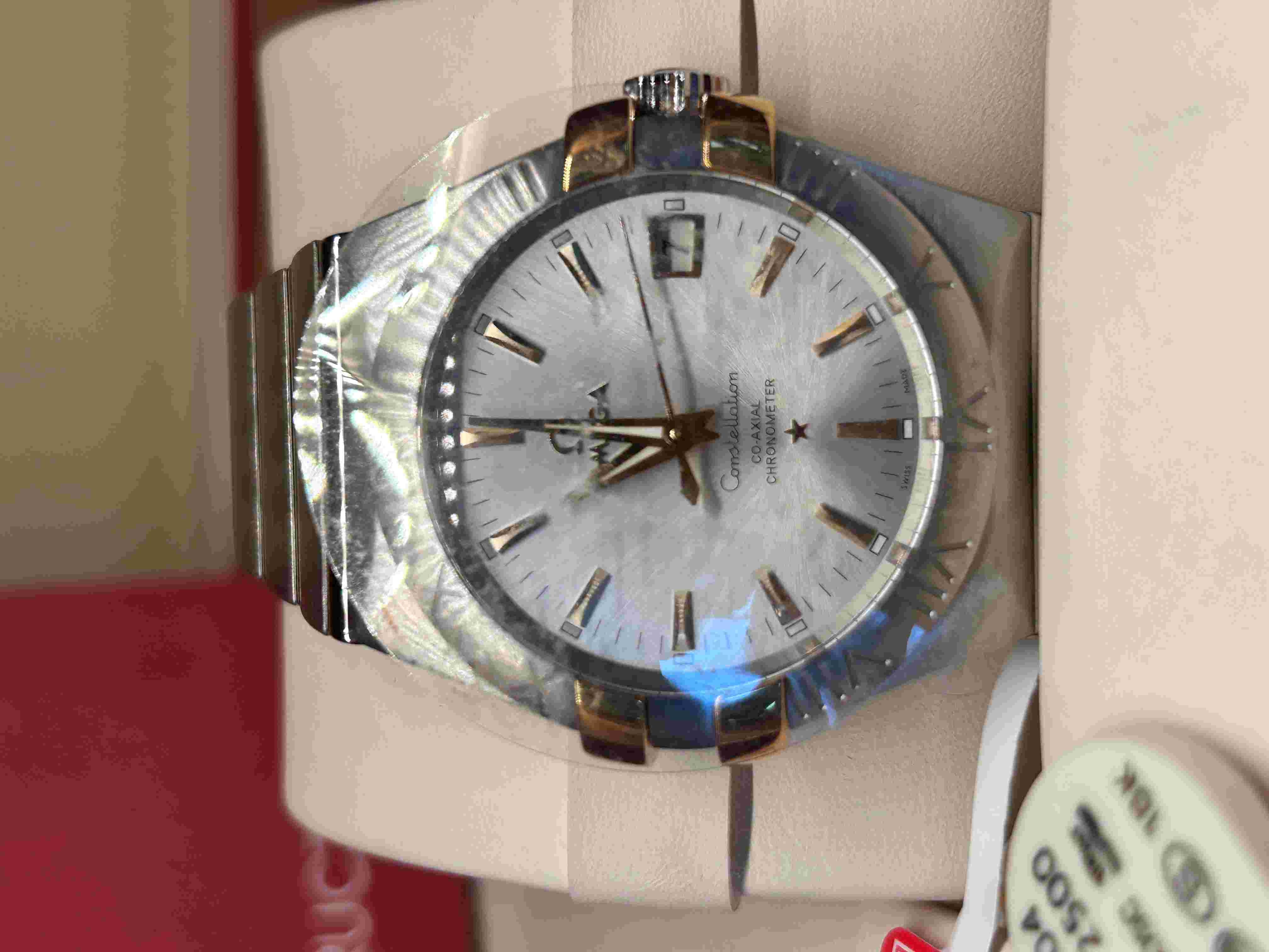 全新正品欧米茄(OMEGA)星座系列男表 18K黄金/精钢镶钻夜光 自动机械机芯,日历款,精钢背透,38-40mm表径 银盘18K金刻度 钢带 防水50米 表镜为蓝宝石水晶玻璃。