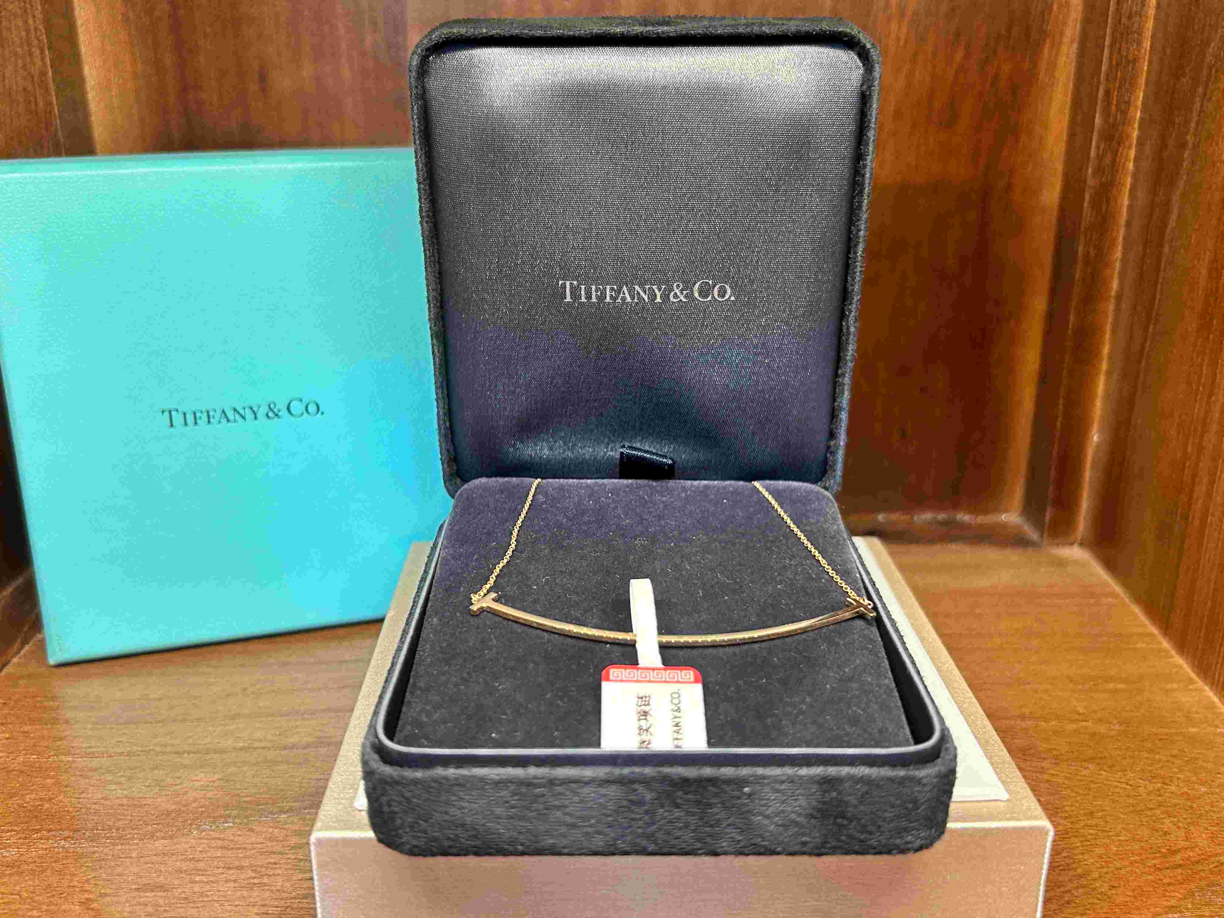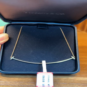 全新正品蒂芙尼TIFFANY&CO.微笑项链带原盒 笑脸长6.5cm,全长45cm(手工测量误差1-2cm)Tiffany 笑脸项链采用18K金材质,搭配微笑弧度设计,象征乐观与幸福。双T标志通过流畅曲线勾勒出新月形轮廓,传递轻松愉悦的时尚态度。