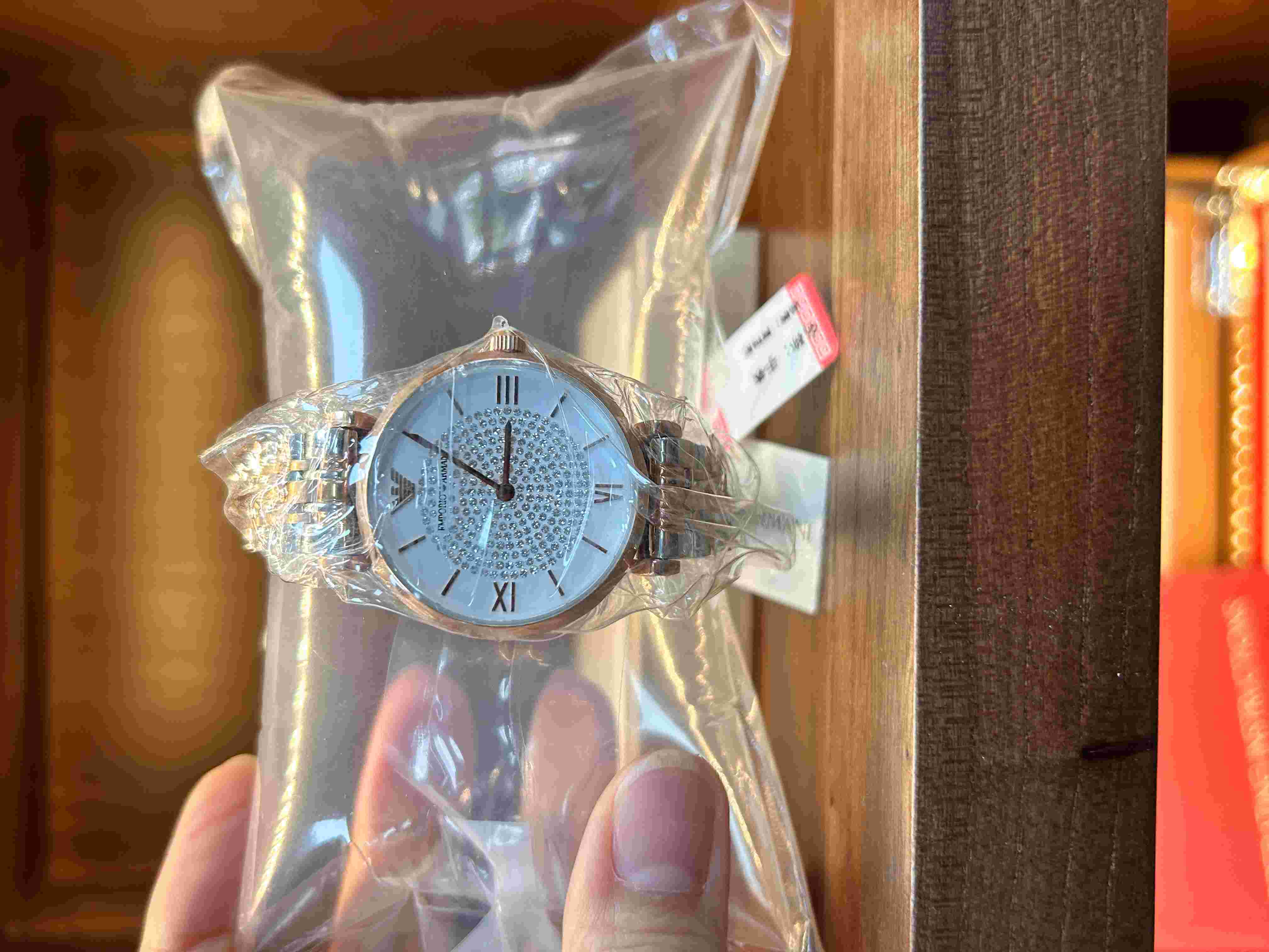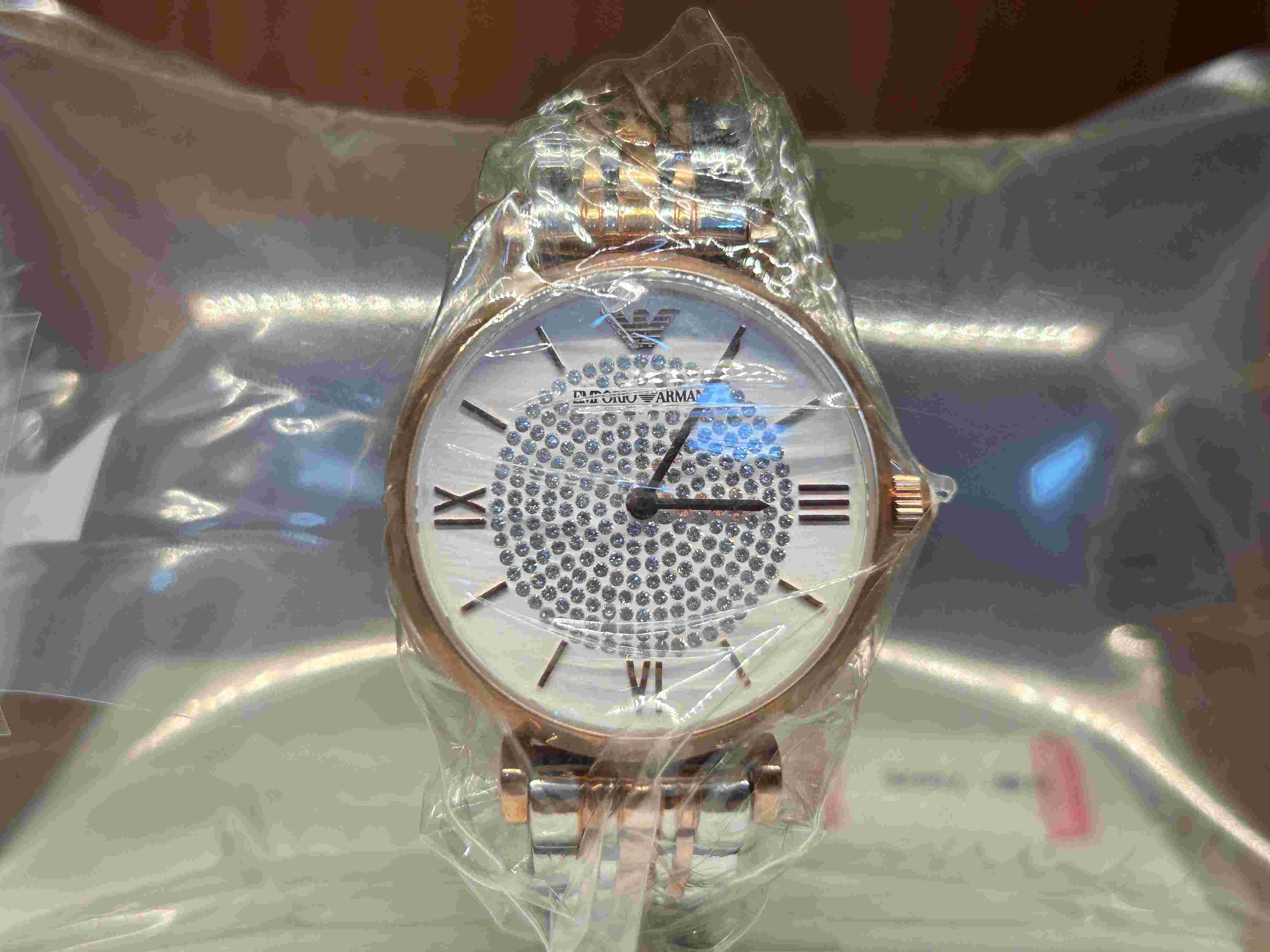 全新正品阿玛尼时装手表无盒 表盘直径30mm 表盘镶嵌晶钻,在不同光线角度下呈现变幻光泽,兼具优雅与时尚感 采用石英机芯 属于入门级时尚腕表。